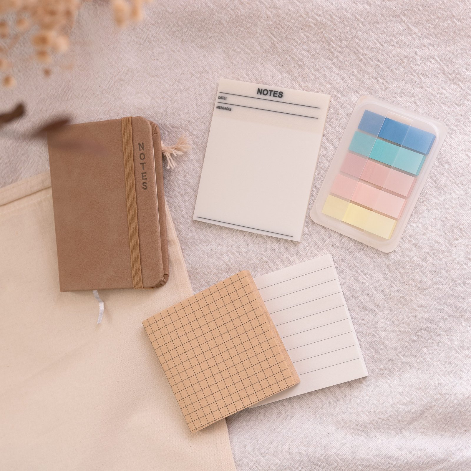 Deux styles complémentaires pour toutes tes notes. Look épuré et naturel, parfait pour un bureau organisé. Faciles à coller et repositionner. Apportent une touche naturelle et fonctionnelle à ton espace de travail.
